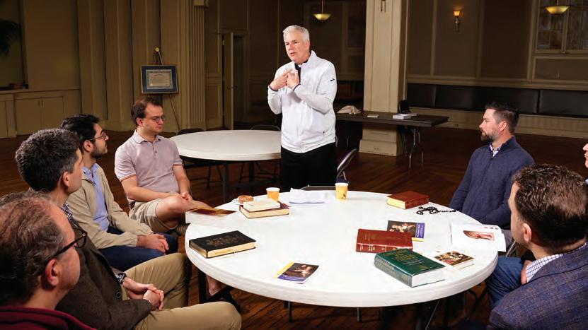 El Padre Vincent Curran ofrece una presentación sobre la lectio divina, la lectura orante de las Escrituras, a los miembros del Consejo San Salvador 1 en una sesión de Cor en el sótano de la iglesia de Santa María.