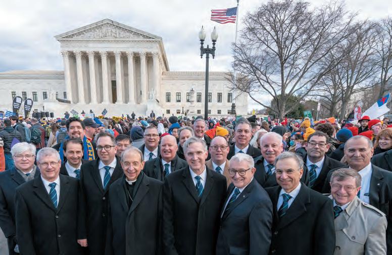 Arriba: Miembros de la Junta Directiva de Caballeros de Colón se reúnen ante el Tribunal Supremo de EE. UU. el 20 de enero durante la 50ª Marcha por la Vida anual, la primera desde que se anuló el caso Roe c. Wade.