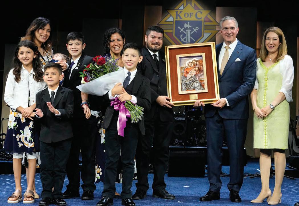 su ministerio apostólico universal. Asimismo, agradece de corazón la constancia de Caballeros de Colón en la defensa de la santidad de la vida humana y la libertad religiosa, así como su solidaridad orante y caritativa con nuestros hermanos y hermanas de Medio Oriente. Implora a los Caballeros y a sus familias que recen por una paz duradera en esa región y en todo el mundo.