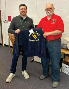 Patrick McBee (right), faith director for St. Vincent de Paul Council 12191 in Berkeley Springs, W.Va., and Jeromy Duelley, Morgan County Schools assistant superintendent, display one of several dozen sweatshirts the council donated to the district. It was the first donation of the council’s new Hoodies for Heaven program, through which the Knights work with school staff to identify clothing needs for students with lesser means.