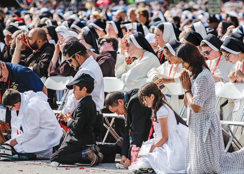 Lâappel double Ă lâapostolat chrĂ©tien et Ă lâĂ©vangĂ©lisation est au cĆur de la renaissance eucharistique nationale aux ĂtatsUnis et de ses initiatives complĂ©mentaires « inviter Ă revenir » et « accompagner ». Le rĂ©cent CongrĂšs national eucharistique Ă Indianapolis sâest essentiellement terminĂ© par une messe de demande lançant la troisiĂšme et derniĂšre annĂ©e de la renaissance, lâAnnĂ©e de la mission (voir la page 8). Les dĂšles, ayant rencontrĂ© le Christ dans lâEucharistie, sont appelĂ©s Ă Ă©vangĂ©liser les autres intentionnellement et Ă les inviter Ă la noce du Seigneur. En e et, ceci est mentionnĂ© dans le cadre de chaque messe : nous envoyer dans le monde (voir la page 14).