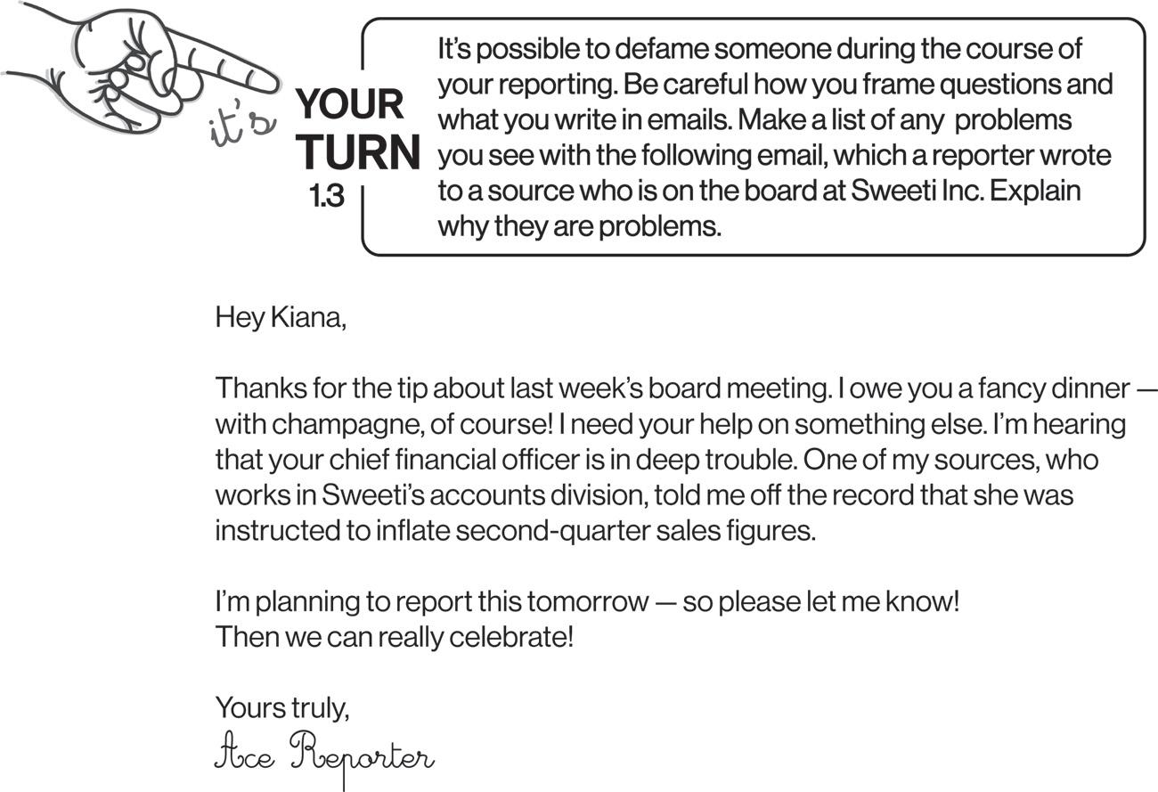 understand the rules in the jurisdiction where your work is being printed or broadcast. Not every newsroom has a lawyer, but several nonprofit groups provide free legal services to journalists.