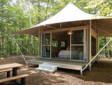 The tiny, wood cottages will accommodate two to four people. The glamping structures on elevated platforms (with a fabric roof) will provide seasonal accommodation. The prospector tents with private decks will offer more of a rustic experience, while the stationary recreational vehicles (for nightly rental) will provide a classic camping experience.