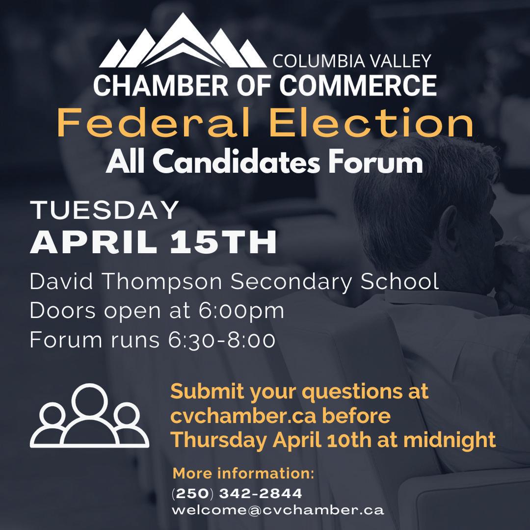 Next up — the federal election, the only time you wield any power as a common citizen. The riding of Columbia-Kootenay-Southern Rockies has six candidates vying for your vote on April 28, so listen to what they have to say on the issues that matter to you. Some candidates will criticize other parties, some will expound on the promises made by their leader, and others will tell it like it is with ideas on how to make life better.