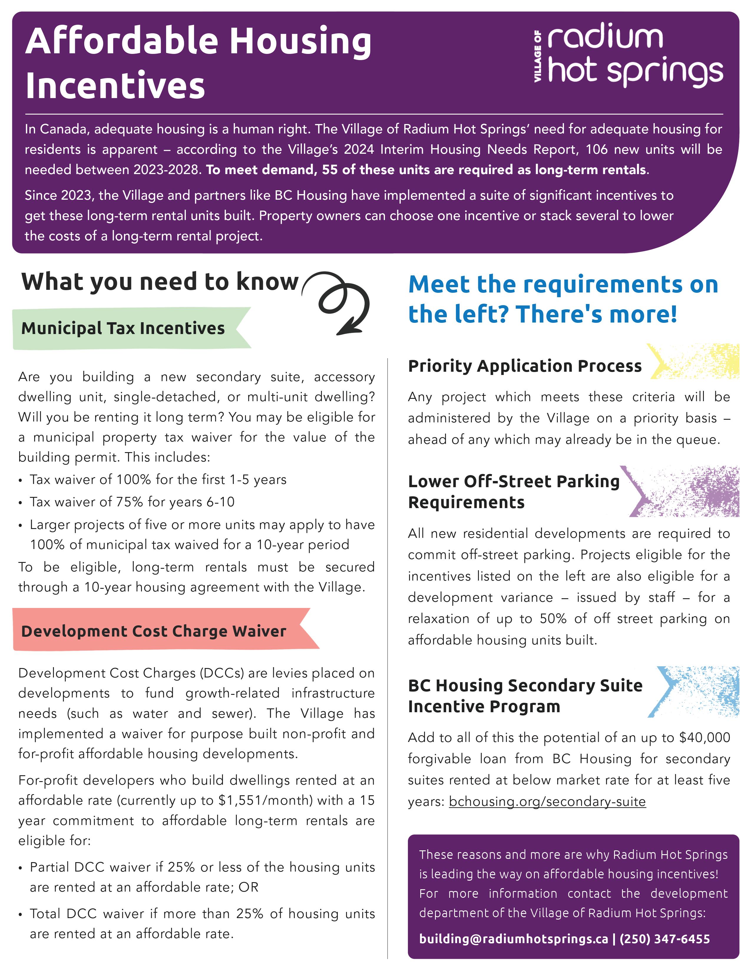 Given the community’s local attractions and proximity to Alberta, there is also a significant population surge over the summer and mid-winter (projections of over 40,000).