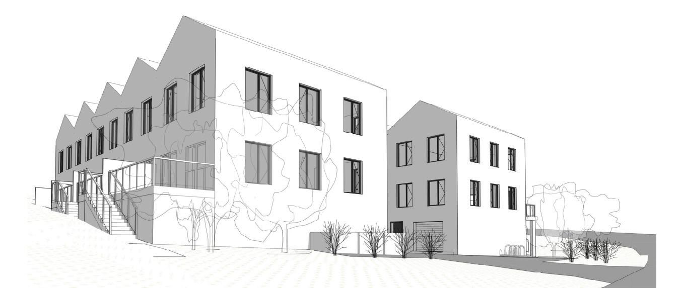 The relatively large lot currently has one older house on it, which would be dismantled to make way for the project. The townhouse-apartments would go up in two rows, running east-west. Of the 10 housing units, two would be two-bedroom units, the rest would be single-bedroom units.