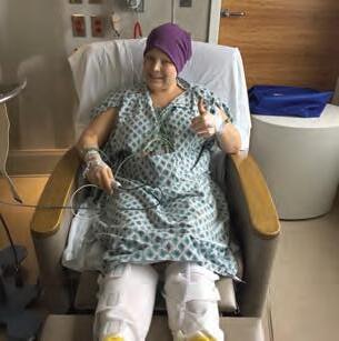 Brooke Lane with hospital staff members on her last day of chemotherapy for ovarian cancer in June 2019