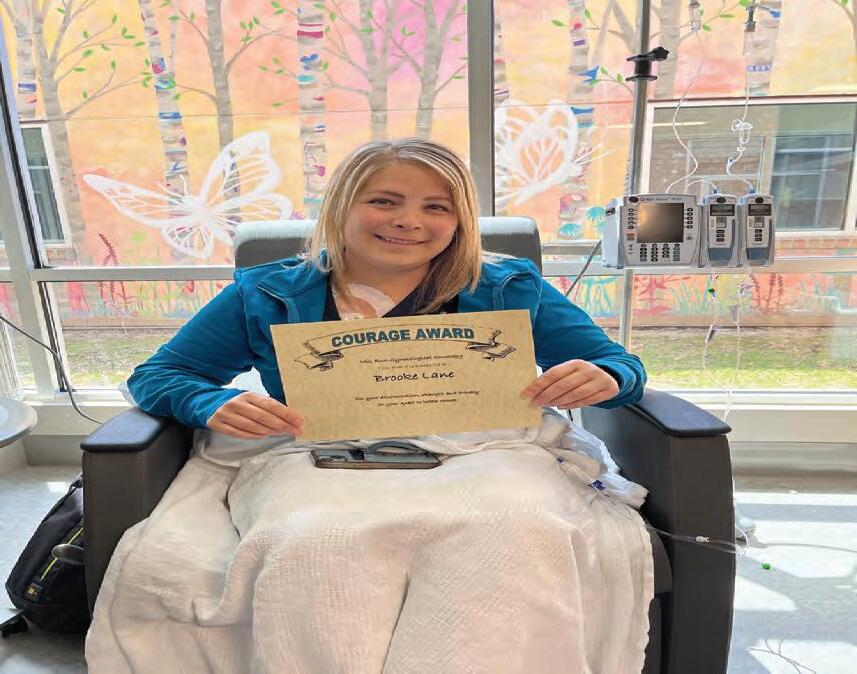 Brooke Lane holds a certificate on her last day of chemotherapy for liver cancer in April 2025.