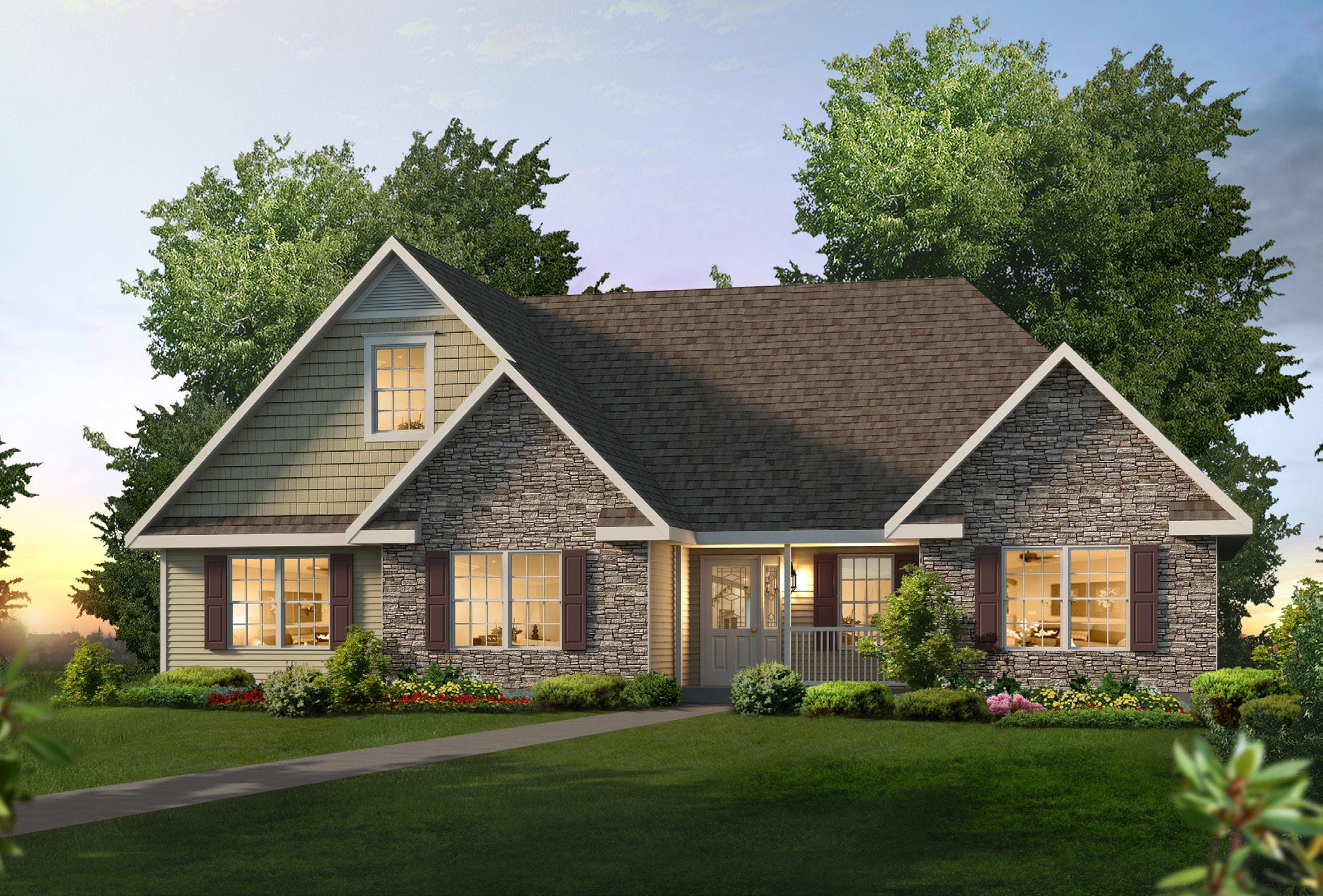 Optional Features: - Twin Peak Dormer with Bumpout - Dutch Eaves - Full Eave Return - Shake Siding Accent - Window Grids - Upgraded Front Door - Sidelite - Octagon Window N/A Features On-Site by Others: - Stone Facade - Garage - Covered Front Porch - Gutters and Downspouts