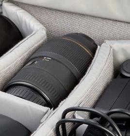 biedt veilig onderdak aan een flinke foto-uitrusting, vaak zelfs compleet met laptop. De indeling kan met behulp van verstelbare schotjes worden aangepast.
