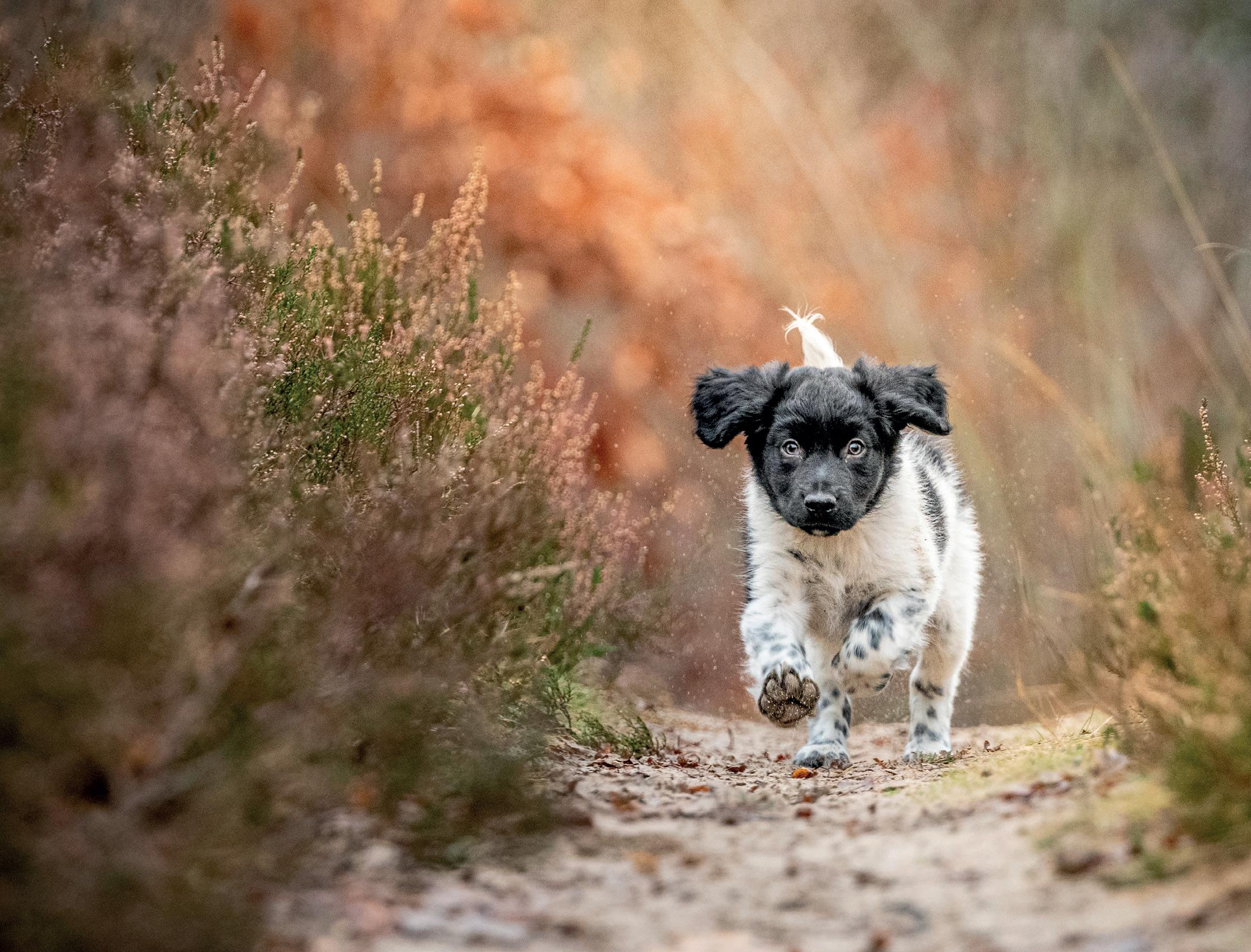 Als sluitertijd gebruik ik minimaal 1/500 seconde, om scherpte te behouden. Een belangrijk onderdeel bij dierenfotografie is dat de ogen scherp zijn. Met deze sluitertijd kun je scherpte in de ogen behouden, maar bij alles wat er omheen beweegt ontstaat er bewegingsonscherpte. Dat was voor deze foto perfect. Voor het scherpstellen gebruik ik de enkelpunts autofocus.