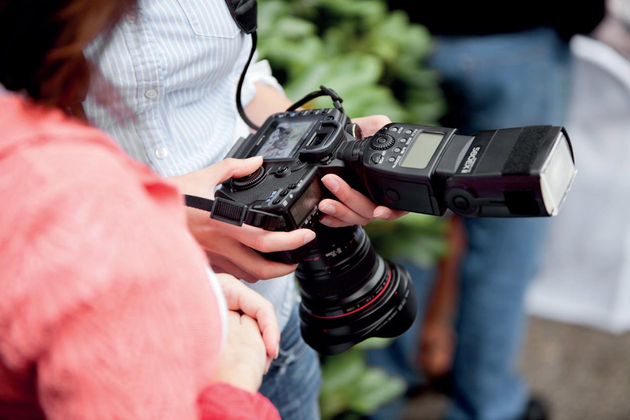 bruidspaar vertrouwt op jouw deskundigheid, dus jij moet ook op jouw apparatuur kunnen vertrouwen. Bij voorkeur ga je daarom met twee body’s op pad. Niet alleen om eentje als back-up te hebben voor het geval dat de ander dienst weigert (je moet er toch niet aan denken om op de grote dag zonder camera te staan ...), maar het is ook fijn om lekker snel ‘van lens te wisselen’ – of eigenlijk van camera dus. Het liefst gebruik je twee camera’s