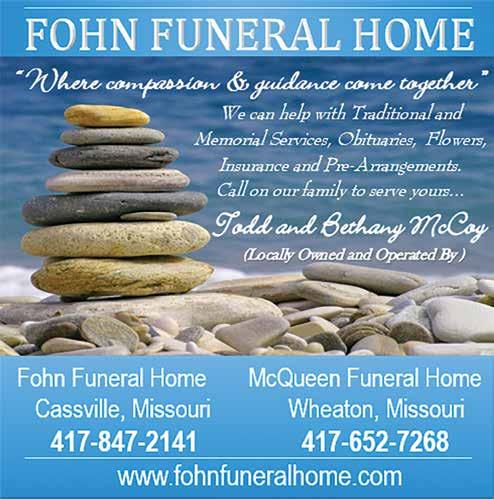 38 | May 2023 Cassville Pierce City Joplin Aurora 417-476-5156 • For All Your Tire Needs PROPANE •TANK SALES• SERVICE AFFORDABLE PROPANE, INC. 417-476-2151 • 309 W. Commercial, Pierce City, MO