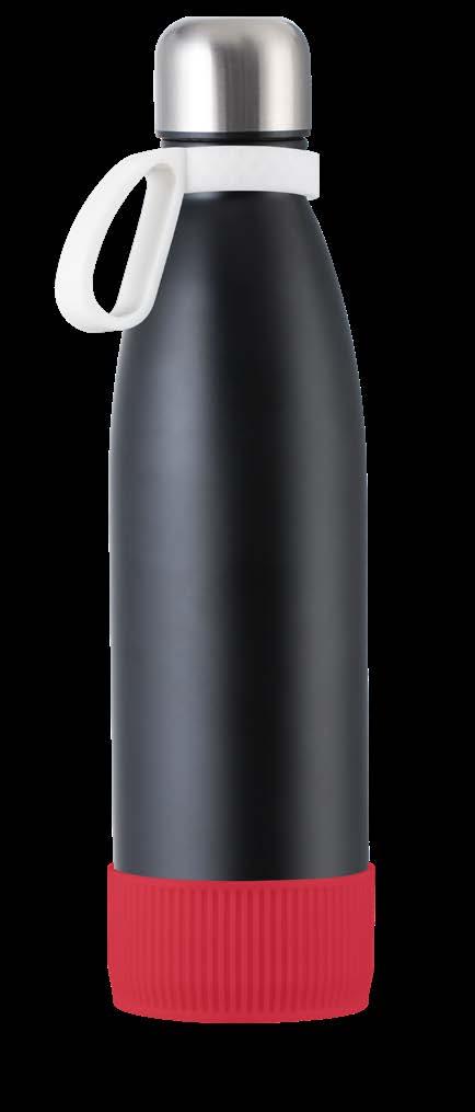 Configure the budget-friendly drinking bottle myToulon according to your customer‘s requirements with a silicone ring for the bottle neck and a bottom sleeve made of high-class silicone. The single-walled stainless steel bottle with 700 ml filling volume is offered in five different varnish colours with anti-fingerprint coating and can be combined with rings and