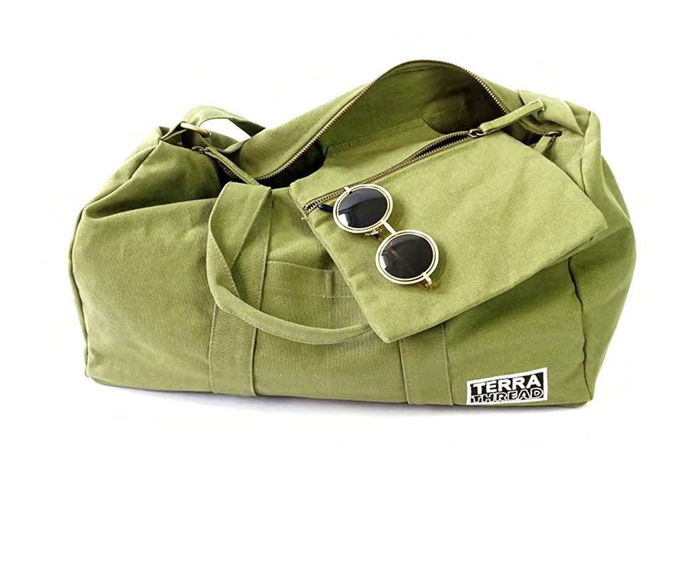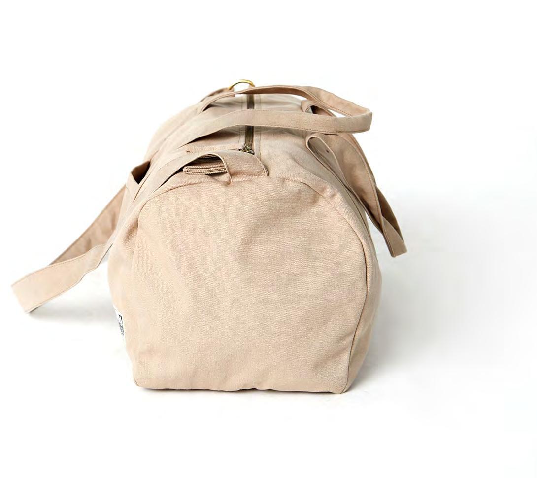 Durable,functionalandversatile,thisistheidealtravelDuffleBag.Itis sustainablyandethicallymadewith14ozheavydutyFairtradeorganiccotton canvas.Perfectforagetaway,gymandmore,itfeaturesaninsidepocketto secureyourvaluablesandanoutsidepocketforeasystorage. FairtradeOrganicCotton|GOTSCertified CarbonNeutral|FairTradeFactory •Longzipperdouble-sidedpulls •Frontpocket •Insidehangingpocket •YKK lead-free antique finish metal zippers •Dimensions:13"(H)x22"(W)x12"(D) People&PlanetFriendly n
