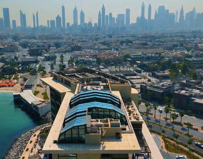 consideration, as the Dubai Walk Master Plan aims to rehabilitate 2,300 km of existing walkways by 2040. The lightweight nature of free form facades ensures that even paths not originally designed for enclosures can be reinforced without overburdening existing infrastructure. The integration of glass—a staple of contemporary architecture— further enhances functionality. With advanced coatings for UV protection and shading and the ability to incorporate solar panels seamlessly into the design, these facades will improve energy efficiency while ensuring pedestrian safety and comfort. The aesthetic appeal of these structures is beautifully showcased in projects delivered by ALEC Facades, a subsidiary of ALEC, such as Hyatt Centric Jumeirah Dubai, where stunning glass roofs create an open, airy atmosphere while offering breathtaking views of the sky, and the Sindalah Golf Course at Neom, designed with a freeform approach, emphasising expansive open spaces and an abundance of natural light.