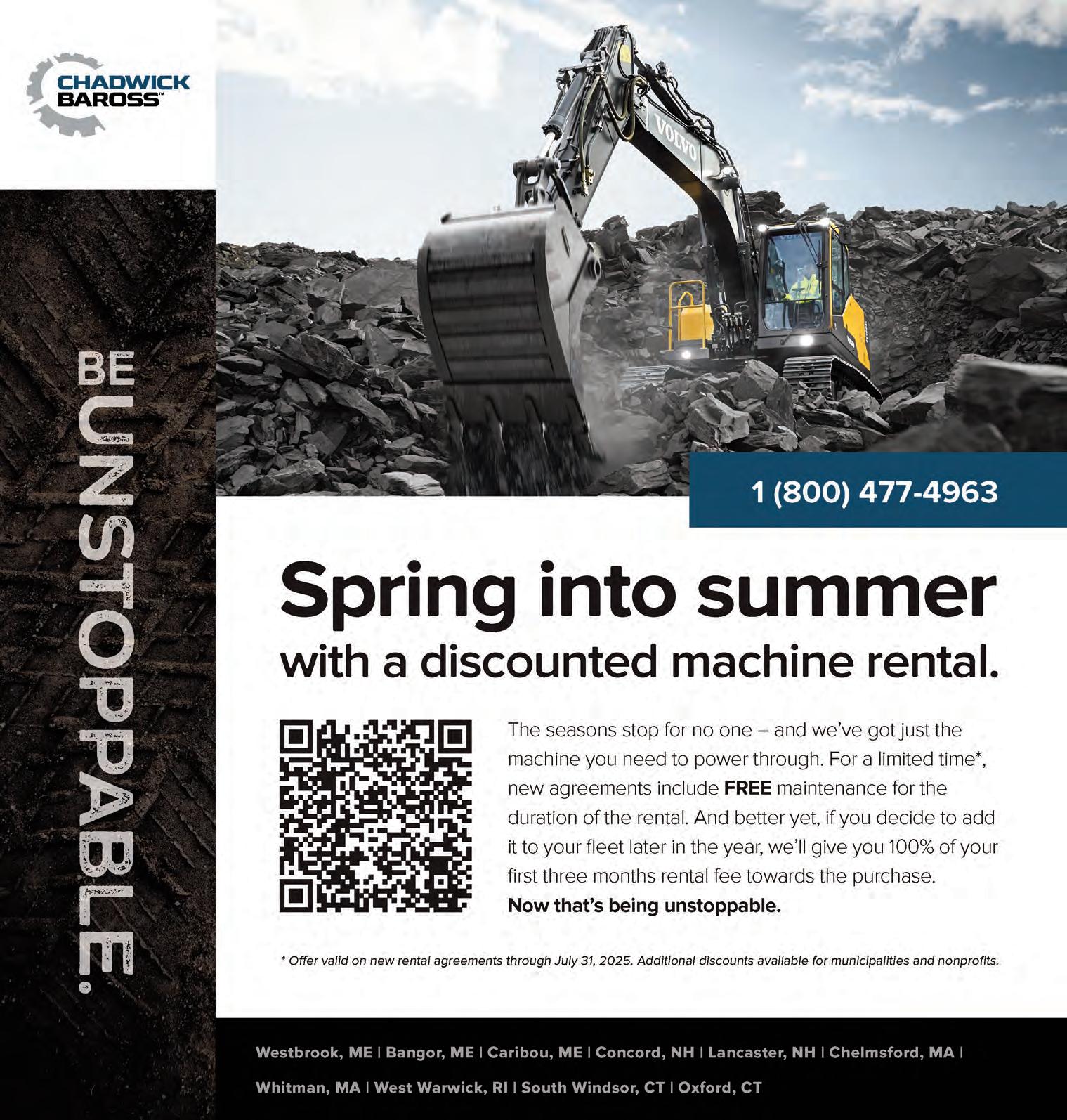 With locations in Westbrook, Bangor and Caribou, Chadwick-BaRoss has a long history of serving the Maine logging industry and offers provides service and support for a large variety of logging, construction and municipal equipment. For more information, visit www.chadwick-baross.com/ CEG