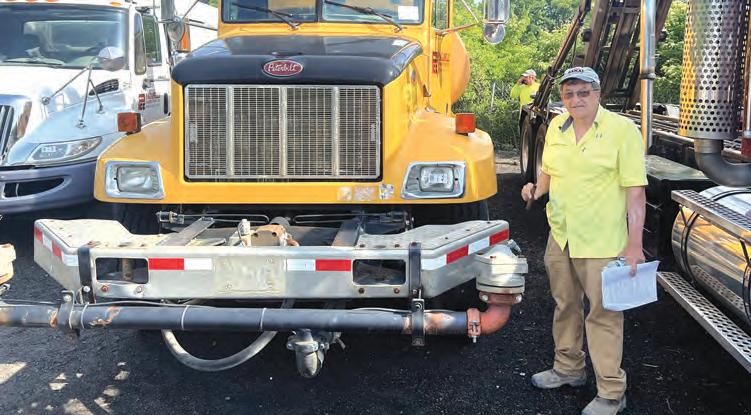 Tony Montano of A. Montano Equipment Company, Saugerties, N.Y., looks over a 2005 Peterbilt water truck.