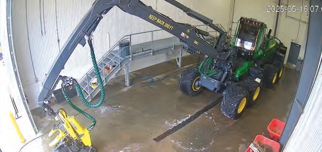 The John Deere harvester by design fells trees, delimbs the tree and processes logs to the specific length required, whether it’s 8-ft., 12-ft., or 16-ft. lengths.