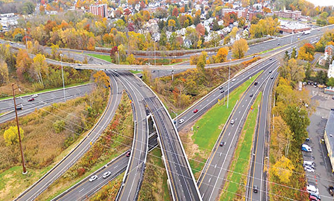An aerial photo of a Connecticut highway interchange. CT.gov photo