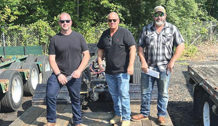 (L-R): Joe Heron, Arrowhead Iron Heavy Equipment, Woodbury, Conn.; Jay Bennette, HL Bennette Jr. Inc., Southbury, Conn.; and Dale Hardisty, Asphalt Repair Solutions, Oxford, Conn., measuring up the lowbeds.