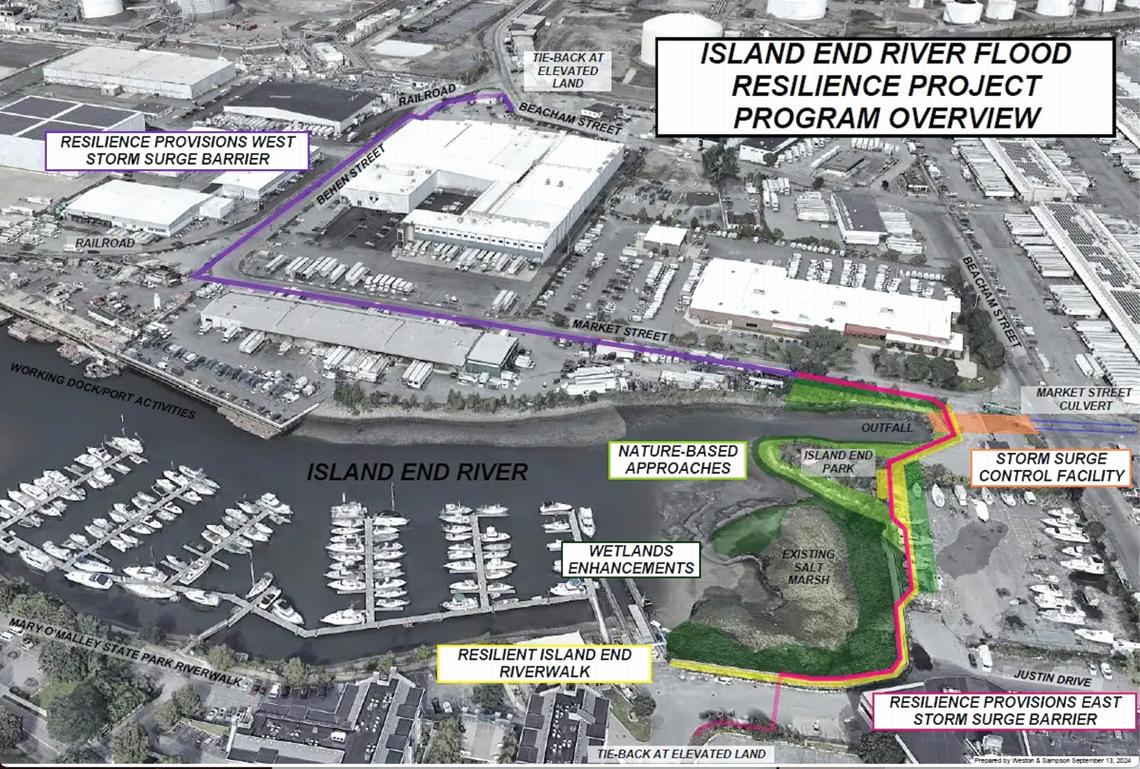 But both of the Boston suburbs of Chelsea and Everett had money on the line — a $120 million flood resilience project for the Island End River that included a storm surge barrier, a storm surge control facility and wetland restoration set to begin construction in 2026.