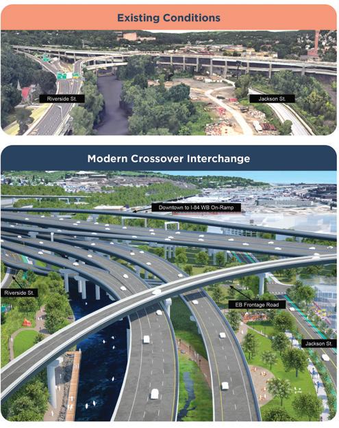 The two replacement options announced by CTDOT aim to improve safety and mobility on I-84 and Conn. 8 as well as upgrade the multimodal connections within the surrounding roadway network. In both alternatives, known as the Modern