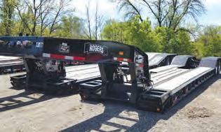 New Rogers 35 ton CR35GR Gentle Risers In Stock, No-Foot Neck w/ tool box, Gooseneck work lights, 24' deck, 16* slope, adj. width bi-fold ramps, side reinforcing full length, chain boxes, outriggers, 275's on alum. outers, Air Ride, Air Dump, Aux. Night Light Battery, Extra Markers & Turns, Rear Strobes. Side Strobes Viper Red and Black................In Stock!
