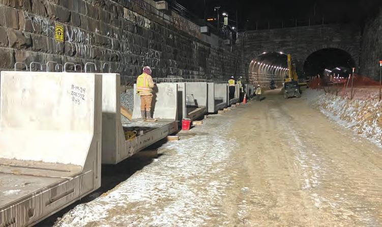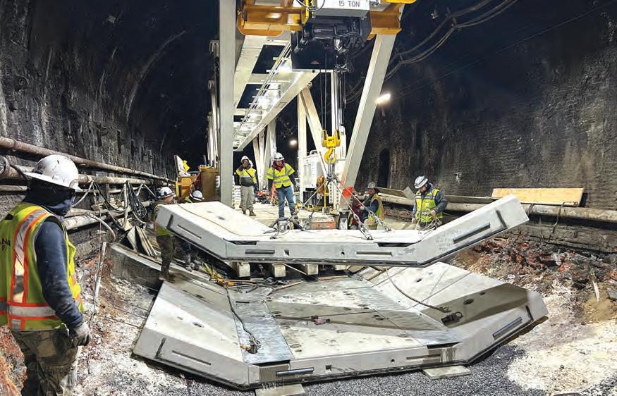 The gantry crane sets the precast inverts after the floor has been excavated to increase the tunnel’s clearance.
