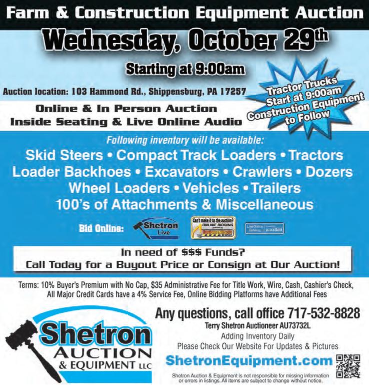 Tues., November 4, 2025 For: 3rd Annual Construction & Ag Consignment Auction