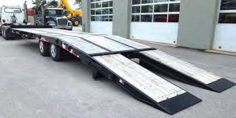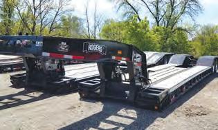 Rogers 40 ton Tandem, No-Foot Neck, 24' deck, adjustable width ramps, bucket pocket, 275's, aluminum outers, night lights, work lights, strobes. Rogers Black............ IN STOCK!
