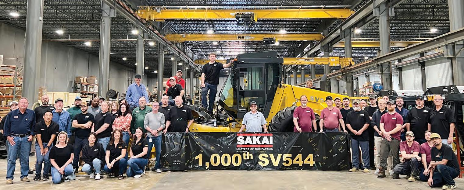 Sakai America Inc. announced a milestone with the production of its 1,000th SV544 soil compactor at its Adairsville, Ga., factory. The specific machine is heading to Power Motive, a dealer in the western United States.