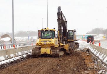 Site work includes pile driving, drilled shafts, pouring concrete abutments/piers, setting beams and pouring new bridge decks. Construction also calls for cement stabilization, subgrade aggregate, asphalt, jack and bore pipe installation and cement spray lining of pipe.
