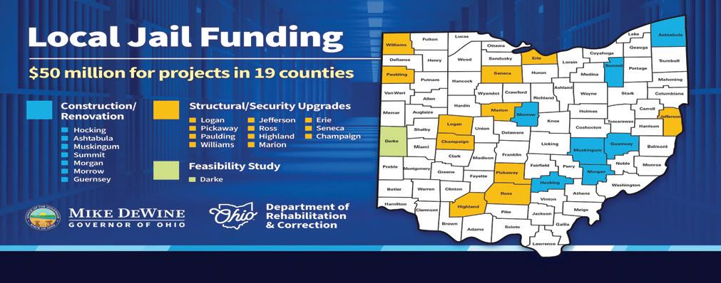 Ohio Gov. Mike DeWine and Annette Chambers-Smith, Ohio Department of Rehabilitation and Correction director, announced May 30, 2025, that the state will award $50 million in grants to support construction and renovation projects at 19 local jails across the state.
