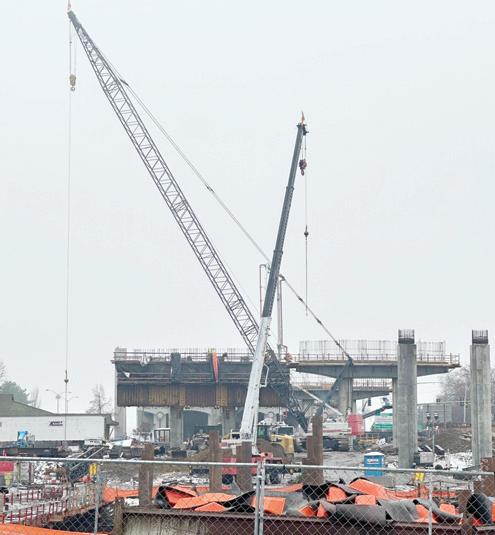 The Spokane River Crossing is part of the $1.5 billion North Spokane Corridor project, first conceived in 1946 with groundbreaking for the first project of the 10.5-mi. stretch in 2001. About 70 percent of the “alternate north-south corridor” is finished, with completion scheduled for late 2030 or early 2031.