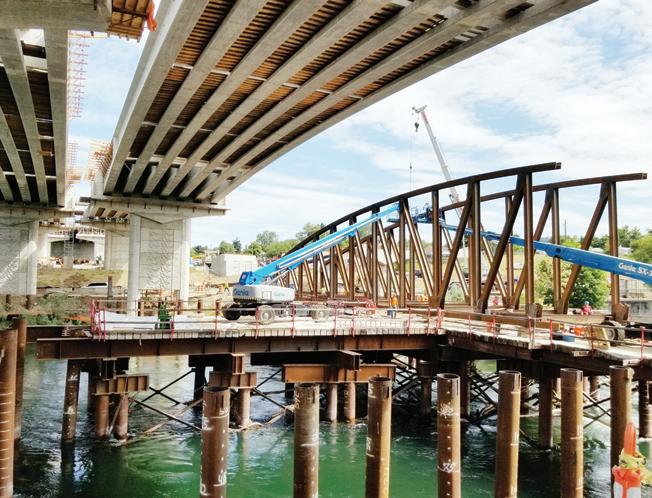 “On this, we’ve had to build a temporary structure, kind of a work utility bridge across the Spokane River for equipment to stage on top of,” he said. “We are under environmental requirements that our windows are roughly June 1 through Nov. 1 to be working in the water. That has always been a challenge to limit those work windows for being in the water but, outside of that, once we get outside those windows and the structure has gone up out of the river, challenge-wise, it's just been keeping the material on schedule.”