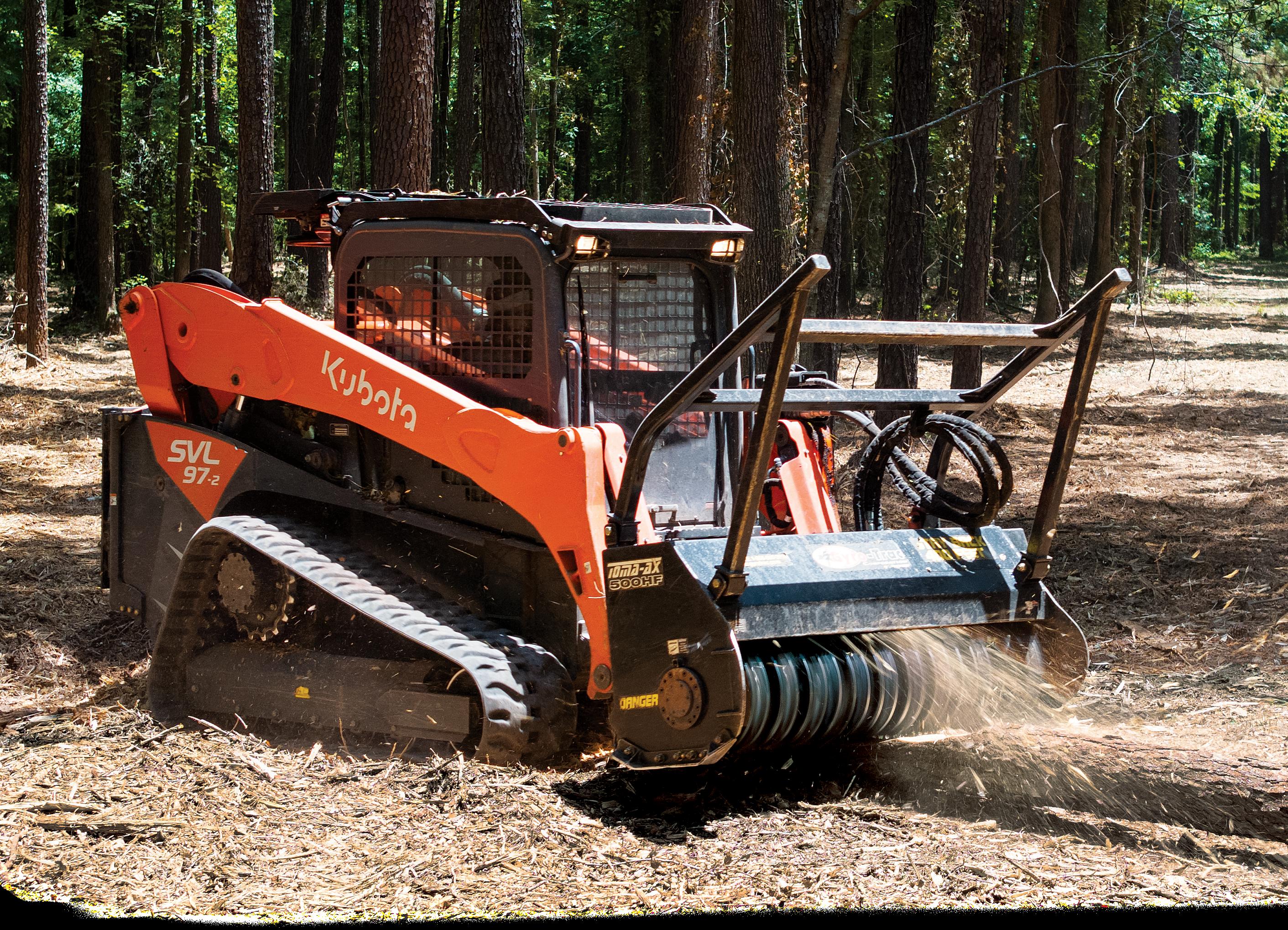 To beat the heat and work efficiently, Smith primarily relies on his Kubota SVL97-2 track loader paired with a Gyro-Trac 500 HF high-flow cutter-head.