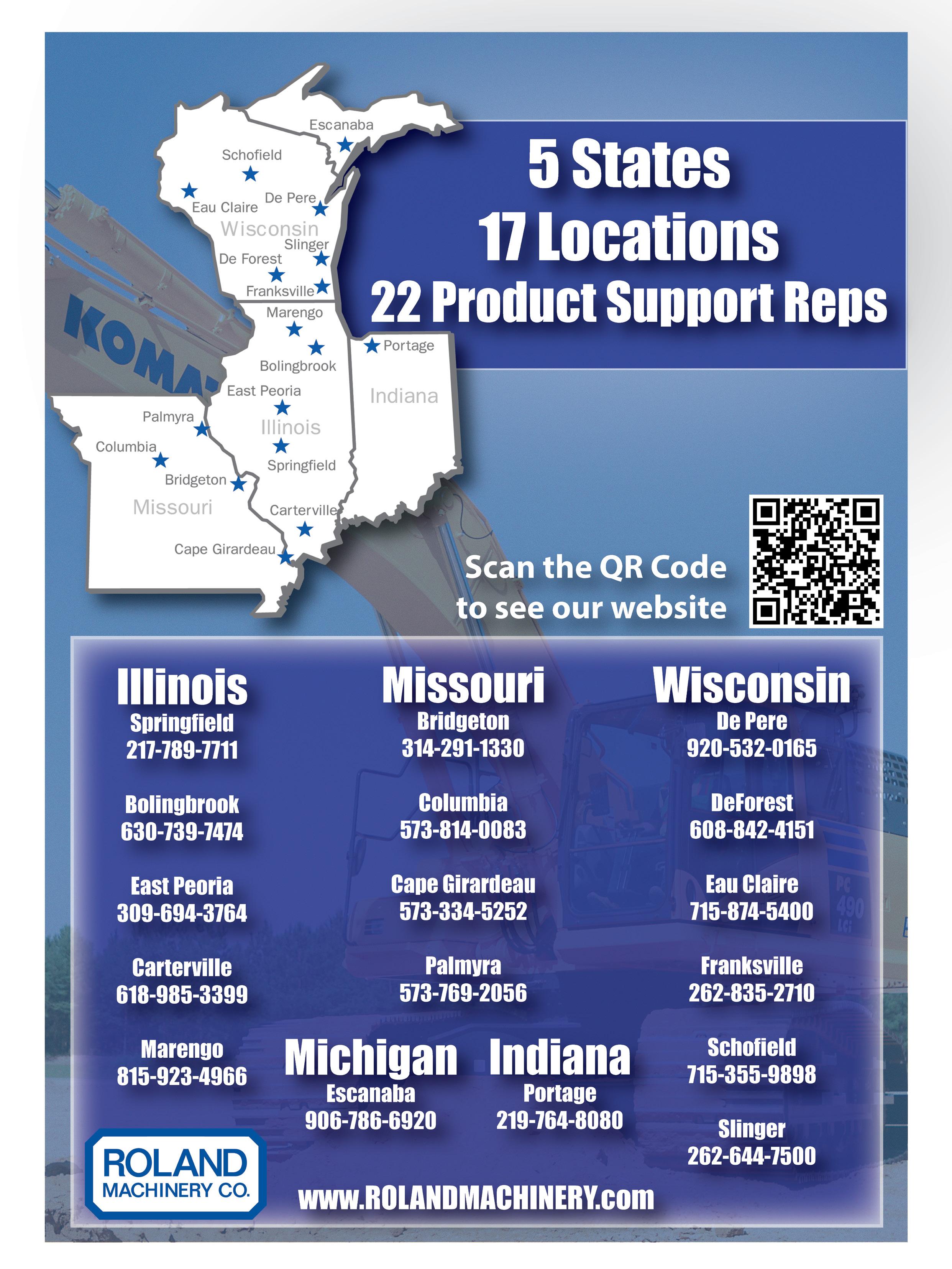 “My customer base includes several limestone quarries, power plants, construction companies, scrap yards and demolition contractors,” said Frazer. “Fortunately, Roland has the capabilities and knowledge to take care of all those industries and more. What really stands out is that we can customize plans, schedule service, and keep customers stocked with parts and ground engaging tools to fit whatever need they have. We can do that with the brands we carry and help with other brands as well. I like being able to help customers find solid solutions to their equipment needs.”