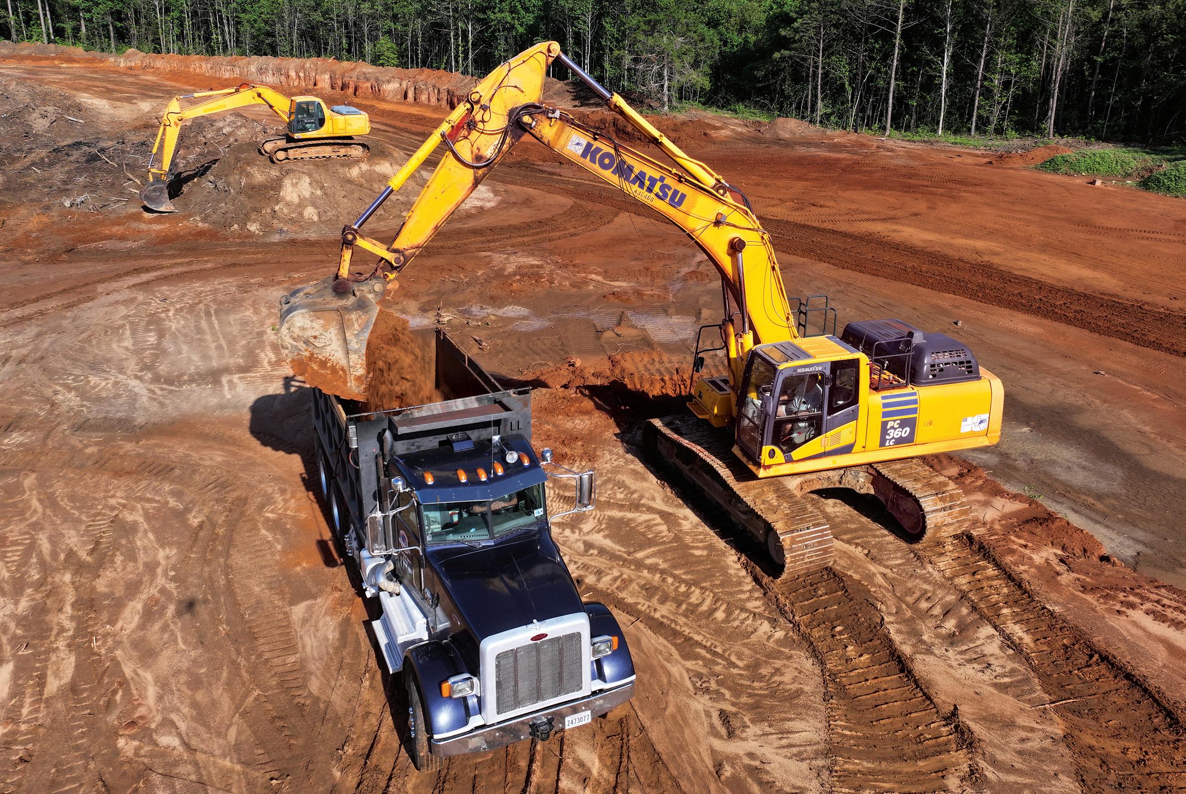 For bigger jobs, Delton Edwards Trucking uses its PC300 and PC360 excavators, sometimes in tandem, such as on a project it did in Hineston last year.
