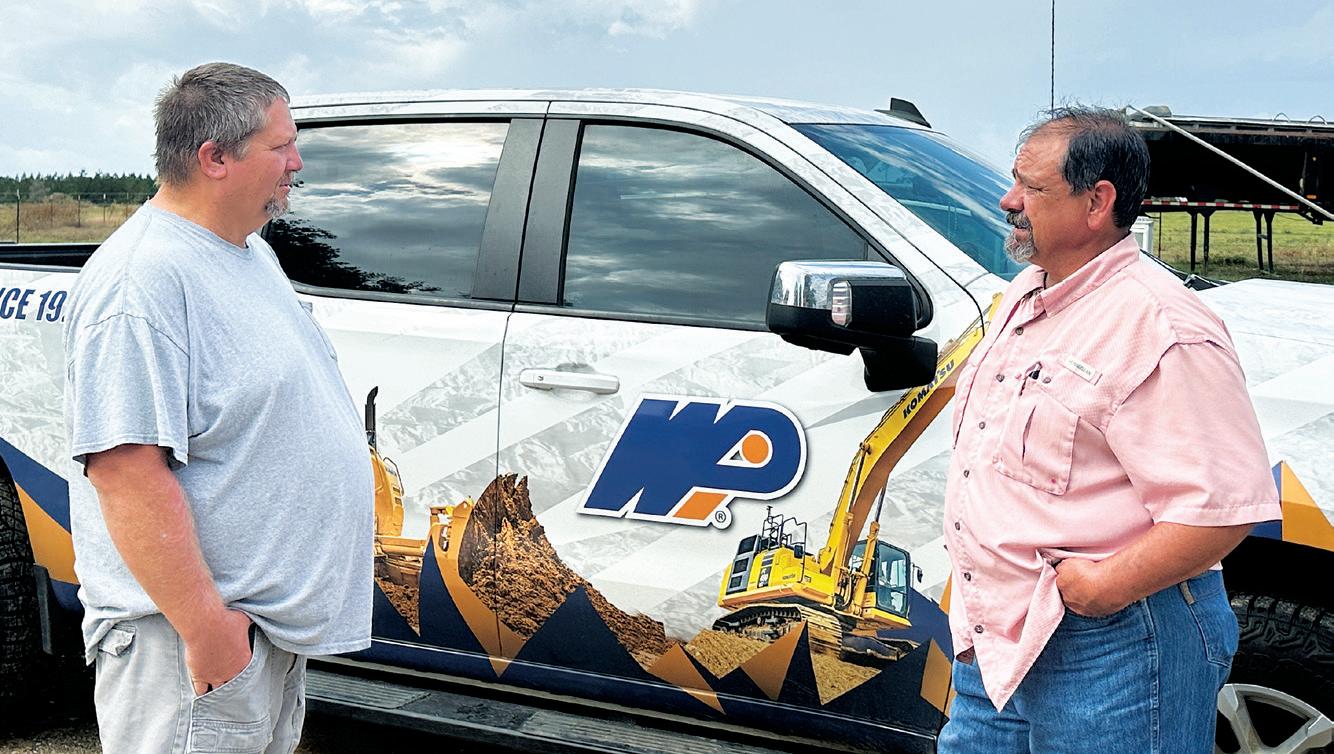 Delton Edwards Trucking Owner Delton Edwards (left) talks with WPI Sales Representative Thomas Turner about equipment and upcoming projects.