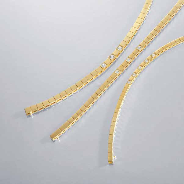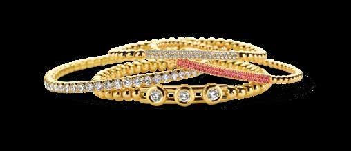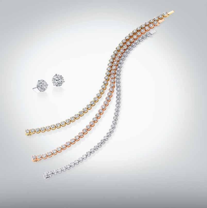 Bezel set diamond bracelets, in yellow, rose, and white gold, $8,250, $10,900 and $10,900.