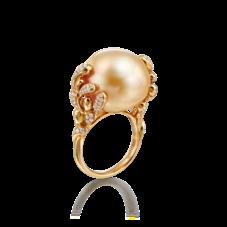 Golden Keshi pearl, 22 karat gold nugget and brown diamond necklaces,$121,000, available individually. Golden South Sea cultured pearl ring with diamonds in rose gold, $9,500.
