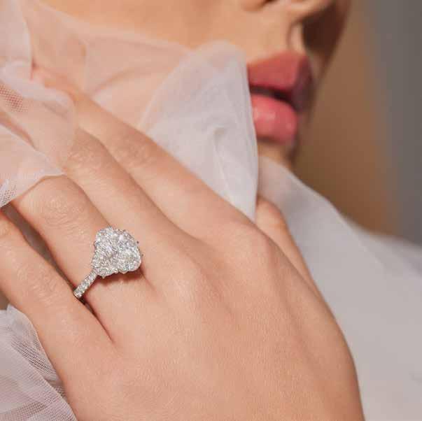 Five carat diamond ring with half moon shape diamond accents and a micro-pave diamond band, $185,000.