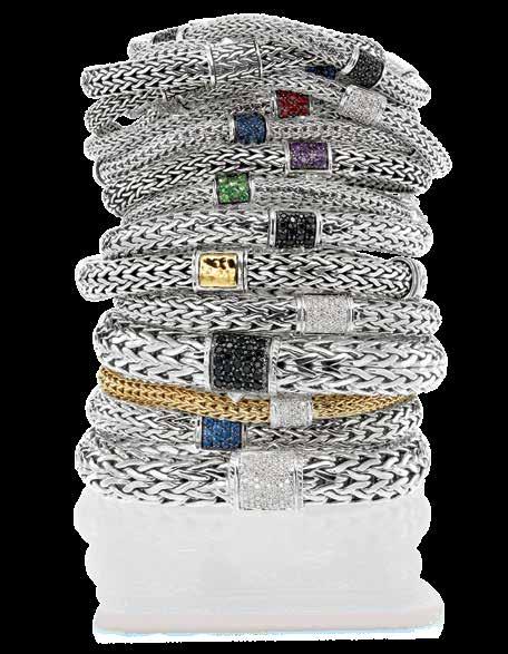 Hardy signature design hand-woven silver bracelets with gemstones and gold clasps, from $650 to $2,900.