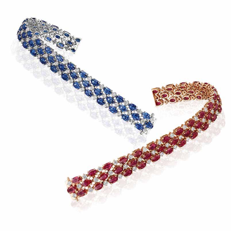 Sapphire and diamond bracelet, $89,500. Ruby and diamond bracelet, $119,900.
