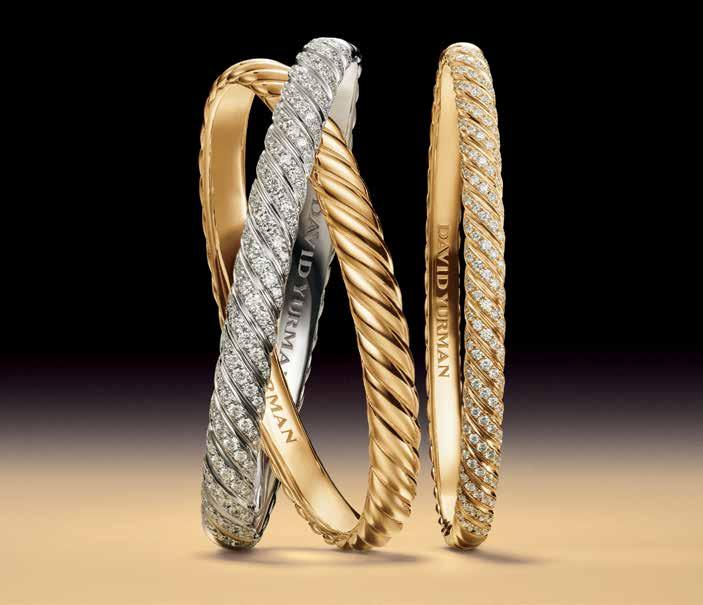 Diamond bangle bracelets, top to bottom: $5,050, $4,200, $11,500 and $4,575.