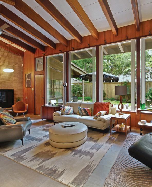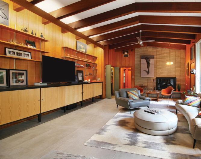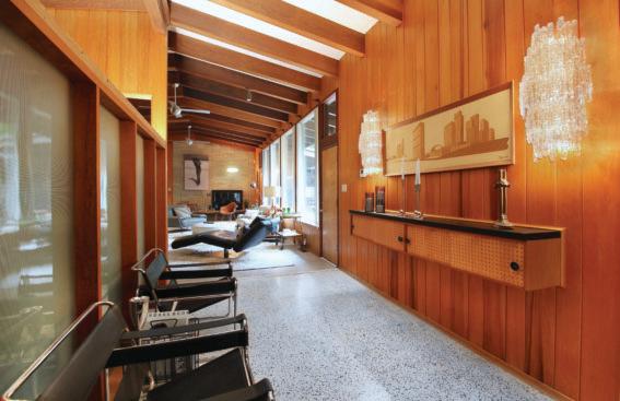 True, the place needed work — like, a lot of work. Rumor had it that the home’s previous occupants had been involved in shady dealings, which required installing a bank of telephone lines in the attic. In the bathroom, aluminum foil lined the walls, shining strangely through the splinters of unfinished wood paneling. The ceilings vaulted up to the roof line — the house had been remodeled at some point, to feel more mod inside than its 1920 build date would suggest — and on one expanse of wall, someone had painted a floor-to-ceiling portrait of a woman in profile. Neighbors told us that folks used to ride motorcycles in through the
