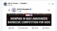 MEMernet celebrity Allan Creasy delivered the comment of the week. On a Fox13 post proclaiming “Memphis in May Announces Barbecue Competition for Kids,” Creasy said, “I think we’d all prefer pork.”