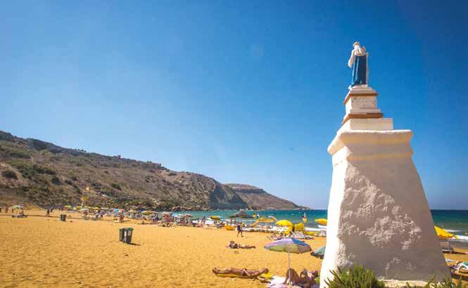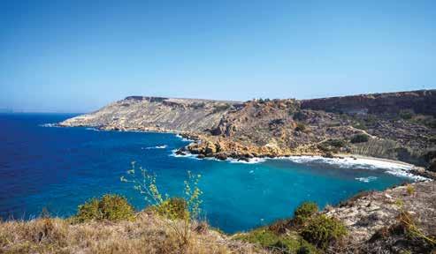 level, and its snack bar will ensure you’re not left wanting, but it can all get quite busy during the summer months. The sea can be accessed by ladder from the rocks, and you can always follow your dip with a walk through the Gozitan countryside to the salt pans on the same coastline.