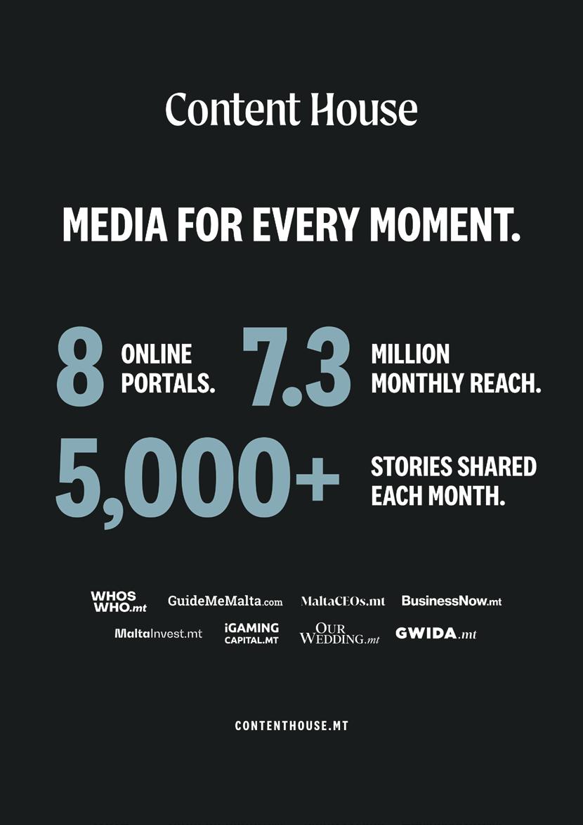 Content House Quad Central, Q2, Level 2, Central Business District, CBD 1040 Tel: 2132 0713 info@contenthouse.mt www.contenthouse.mt